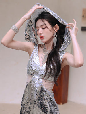 Dollytang Audrey Sequin Hooded Maxi Dress
