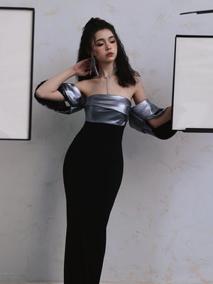 Dollytang Beatrice Metallic Splice Maxi Dress