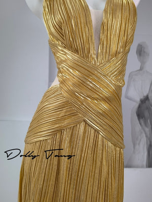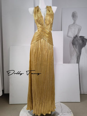 Dollytang Jamie Deep-V Ruching Detail Maxi Dress