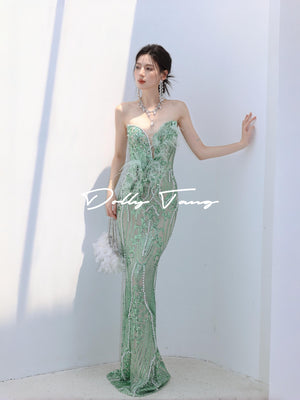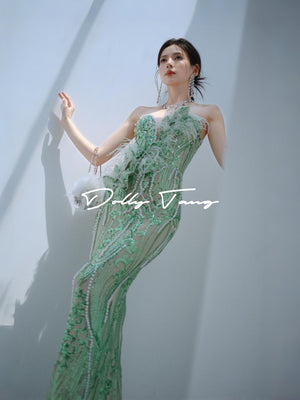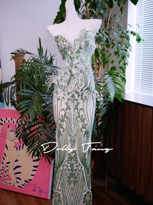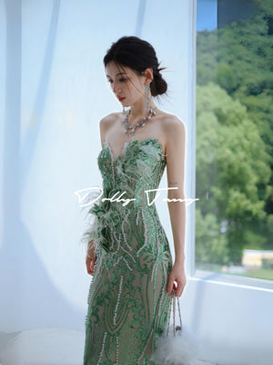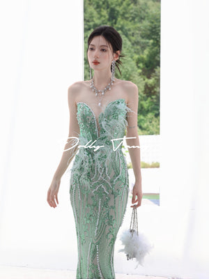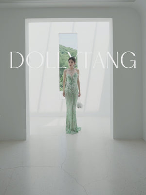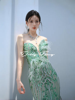 Dollytang Agata Strapless Pearl Feather Maxi Dress