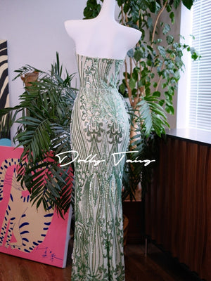 Turn heads effortlessly in the Dollytang Agata Strapless Pearl Feather Maxi Dress. This playful design combines elegant pearls with soft feather details for a whimsical touch. The strapless silhouette highlights your shoulders, while the flowing maxi length creates a graceful, dreamy look perfect for any special occasion. Embrace fun sophistication with every step you take.