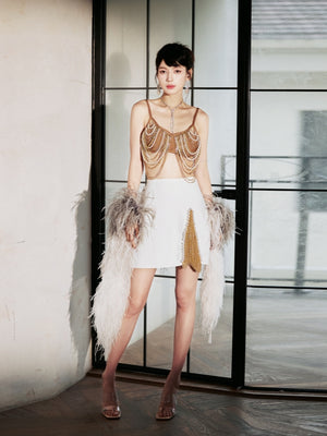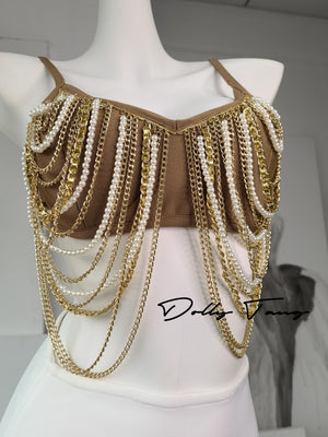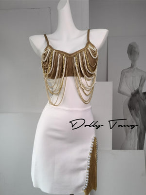 Dollytang Blanche Pearl Fringe Chain Beaded Skirt Set