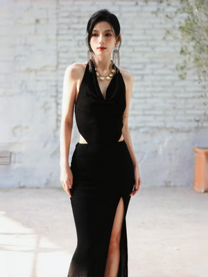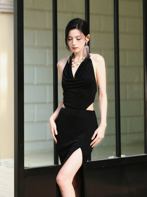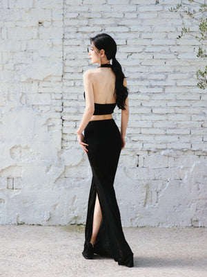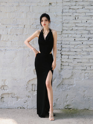 Dollytang Bonnie Halterneck Cut-out Split Maxi Dress
