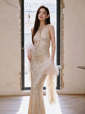 Dollytang Eunice Cut-Out Sequin Maxi Dress
