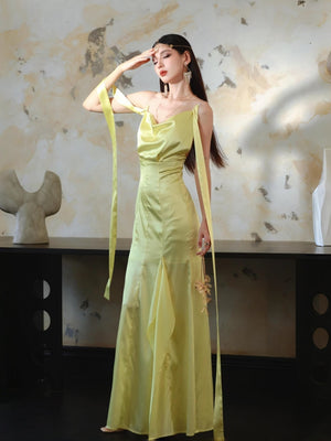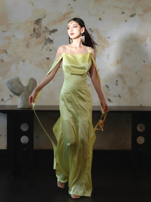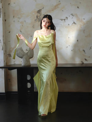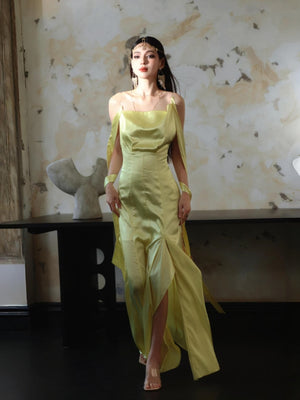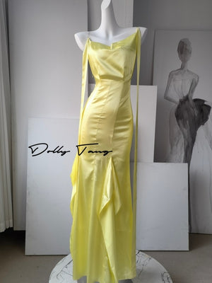 Dollytang Faithe Spaghetti Split Satin Maxi Dress