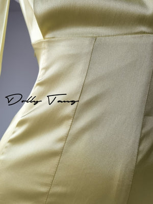 Get ready to turn heads in the Dollytang Faithe Spaghetti Split Satin Maxi Dress. This stunning dress features a unique spaghetti strap design and a sultry slit, perfect for a night out. Made with high-quality satin material, this dress will make you feel like a goddess.