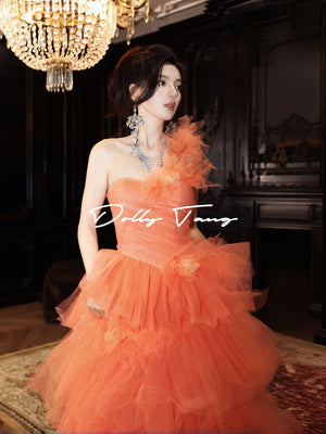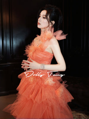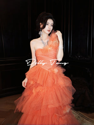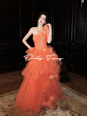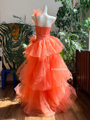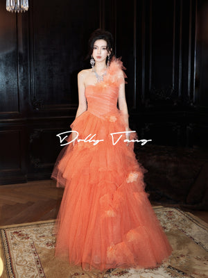 - One shoulder dress with 3D floral applique tiered ruffle cocktail party gown, Have a chest pad.