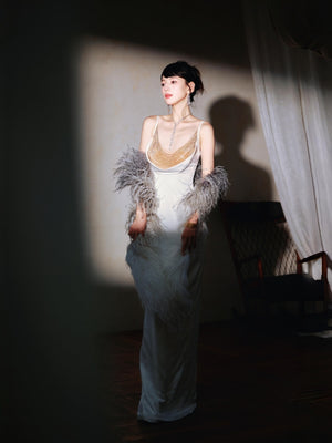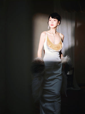 Dollytang Floating Dream Spaghetti Metal Chain Maxi Dress