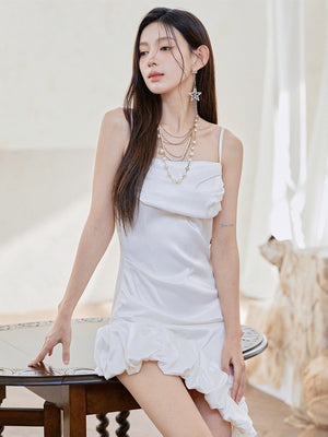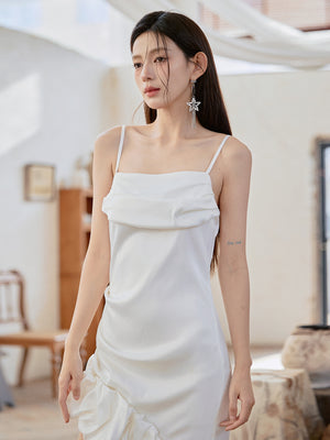 Dollytang Flora Spaghetti Ruffle Irregular Midi Dress