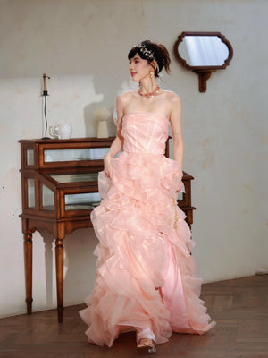 Dollytang Freud Rose Strapless Maxi Mesh Dress