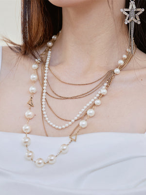 Elevate your style with the Dollytang Gustave Layered Pearl Necklace. This elegant piece features a stunning layered design, adorned with lustrous pearls. Elevate any outfit with this timeless necklace and add a touch of sophistication to your look.