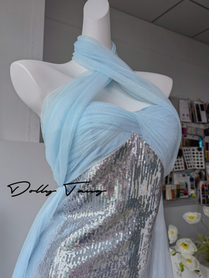 Unleash your inner glamour with the Dollytang Hazel Halterneck Sequin Patchwork Draped Mesh Mini Dress! This stunning piece features a halter neckline, sequin patchwork, and draped mesh for a chic and elegant look. Perfect for a night out, this dress will turn heads and make you feel like a true fashion icon. Elevate your style with this must-have dress!