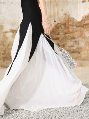 - BandagePatchwork mesh fabric, Supported by fish bones, Fishtail skirt, Classic black and white color contrast design.