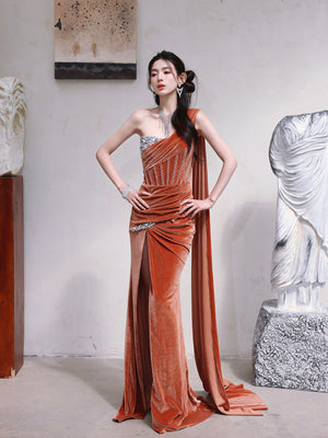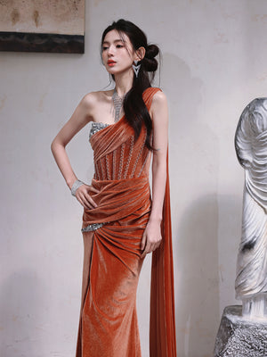 Dollytang Hilda One Shoulder Sequin Patchwork Velour Maxi Dress