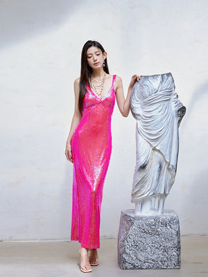 Dollytang Hulda Hot Pink Sequin Maxi Dress