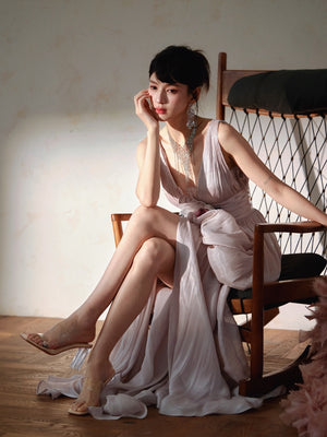 Dollytang Jellyfish Flower Draped Split Maxi Dress