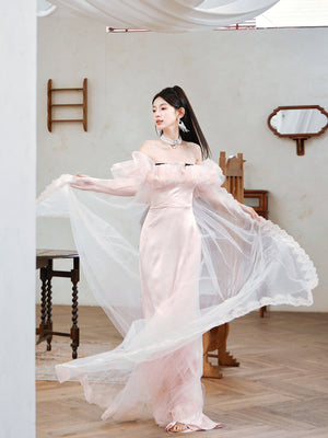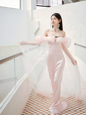 Dollytang Jocelyn Ruffle V Neck Satin Maxi Dress