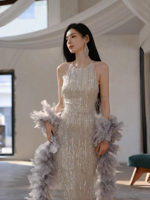 Dollytang Journey Halter Backless Tassel Maxi Dress