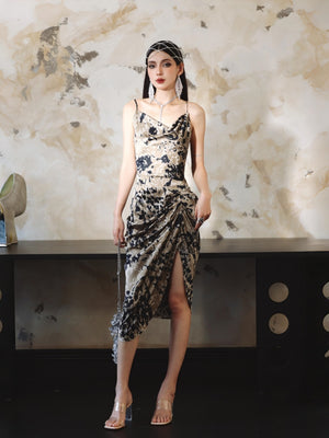 Dollytang Katherine Spaghetti Wash Painting High Slit Midi Dress