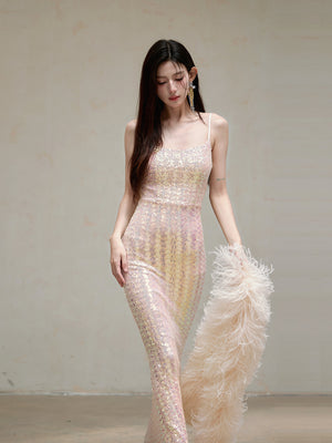 Dollytang Lorraine Suspenders Sequin Maxi Dress