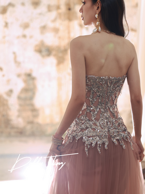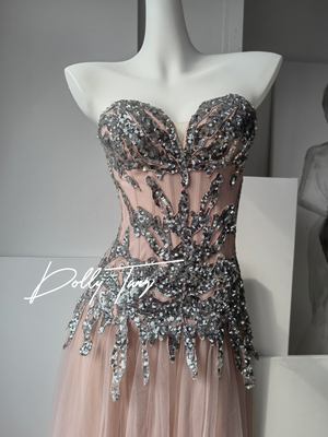 Dollytang Yvonne Strapless Sequin Mesh Maxi Dress