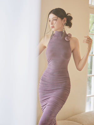 Dollytang Cornelia Embellished Flowers Midi Dress In Lavender
