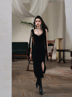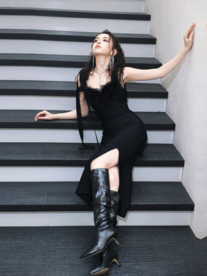 Dollytang Daisy Lacing Feathered Midi Dress
