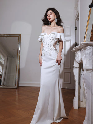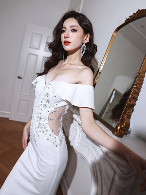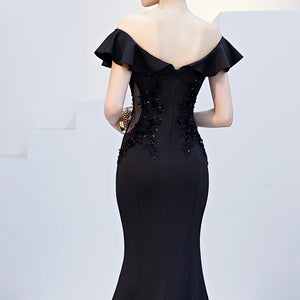 Unleash your inner fashionista with the Dollytang Joanna Off-shoulder Ruffle Fishtail Dress! The flirty off-shoulder design and delicate ruffle details add a touch of romance, while the fitted fishtail silhouette accentuates your curves. Perfect for any special occasion, this dress will make you feel confident and beautiful.