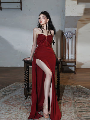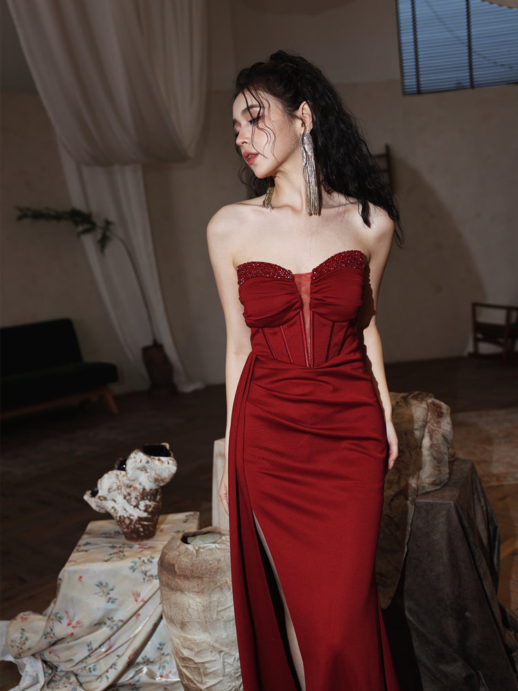 Dollytang Ethel Rhinestone Tube Top V-neck Maxi Dress