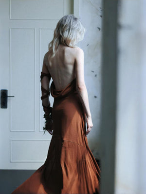 Shieratt Artemisia Halter Neck Backless Maxi Dress With Ribbon