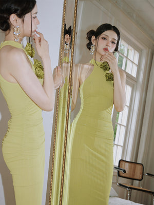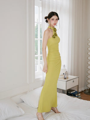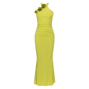 Dollytang Cornelia Solid 3D Rosette Ruched Mermaid Maxi Dress